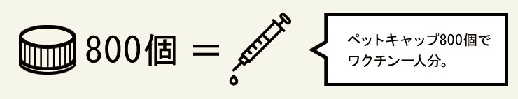 ペットボトルのキャップ800個で一人分のワクチンを作ることが出来ます。