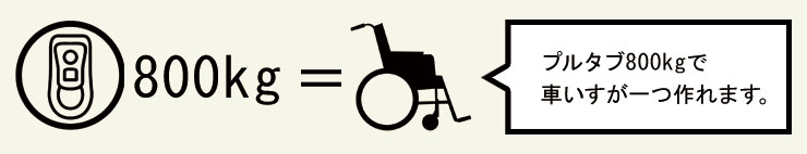 プルタブ800kgで車いす一台と交換できます。